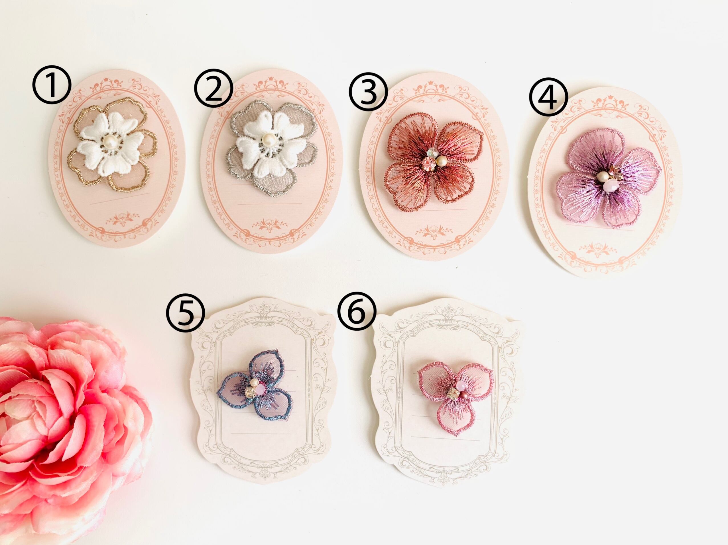 ❤️ 繊細に輝くオーガンジーにラメ糸で刺繍された、美しいフラワー。中央にビーズやラインストーンで装飾を施しました。